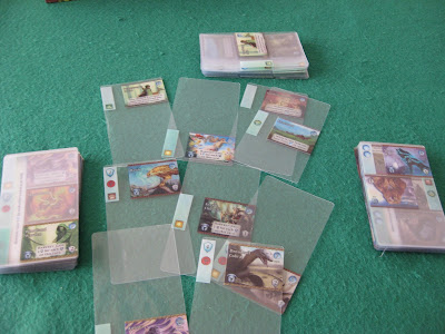 “Mystic Vale” започва като всяка “deck building” игра – всеки от играчите получава персонално тесте включващо стартовите му карти. Всяка една от картите се поставя предварително в прозрачни протектори, които пристигат като част от играта. Тестета от своя страна са напълно идентични, като се различават само по цвета на гърба на картите. И дотук с добре познатите ви похвати в жанра.